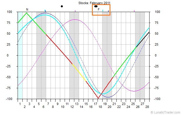 On February 17 we had a planetary extreme for Mercury and Neptune, followed by Full Moon in early morning February 18. The lunar perigee came on Feb 19, and lunar latitude extreme on Feb 20, when the market was closed for weekend.