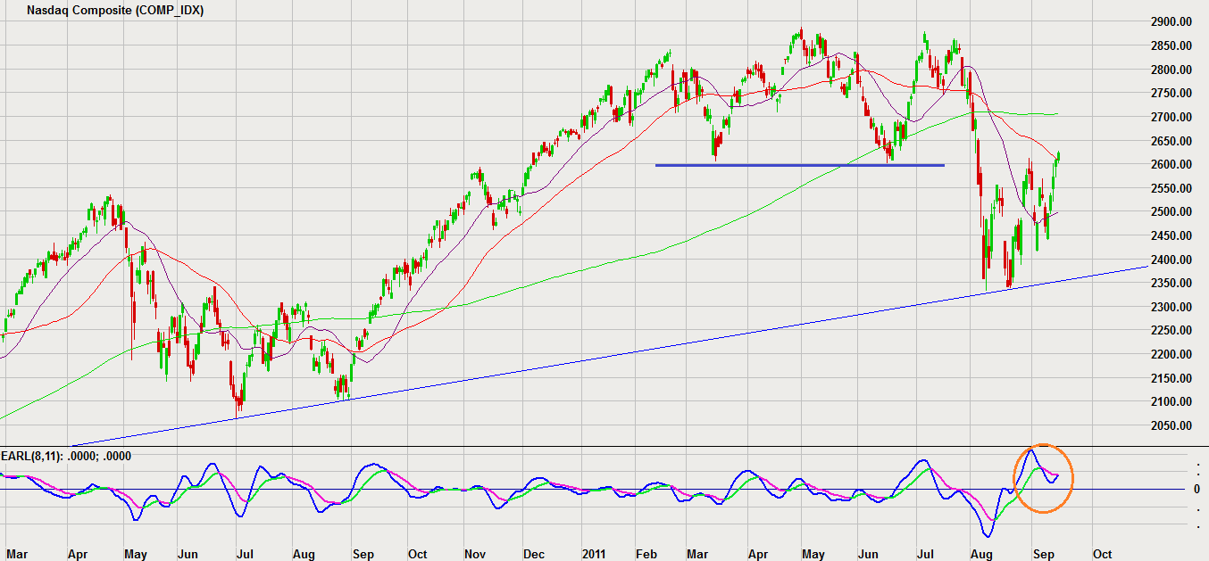 The Nasdaq has broken back above the 2600 level, which has been a major support level all year. This is a positive technical development, but it will be important for the market to confirm this breakout by holding above this level in the coming weeks and months. A fall-back would suggest a failed breakout and negate the signs of strength we just got.