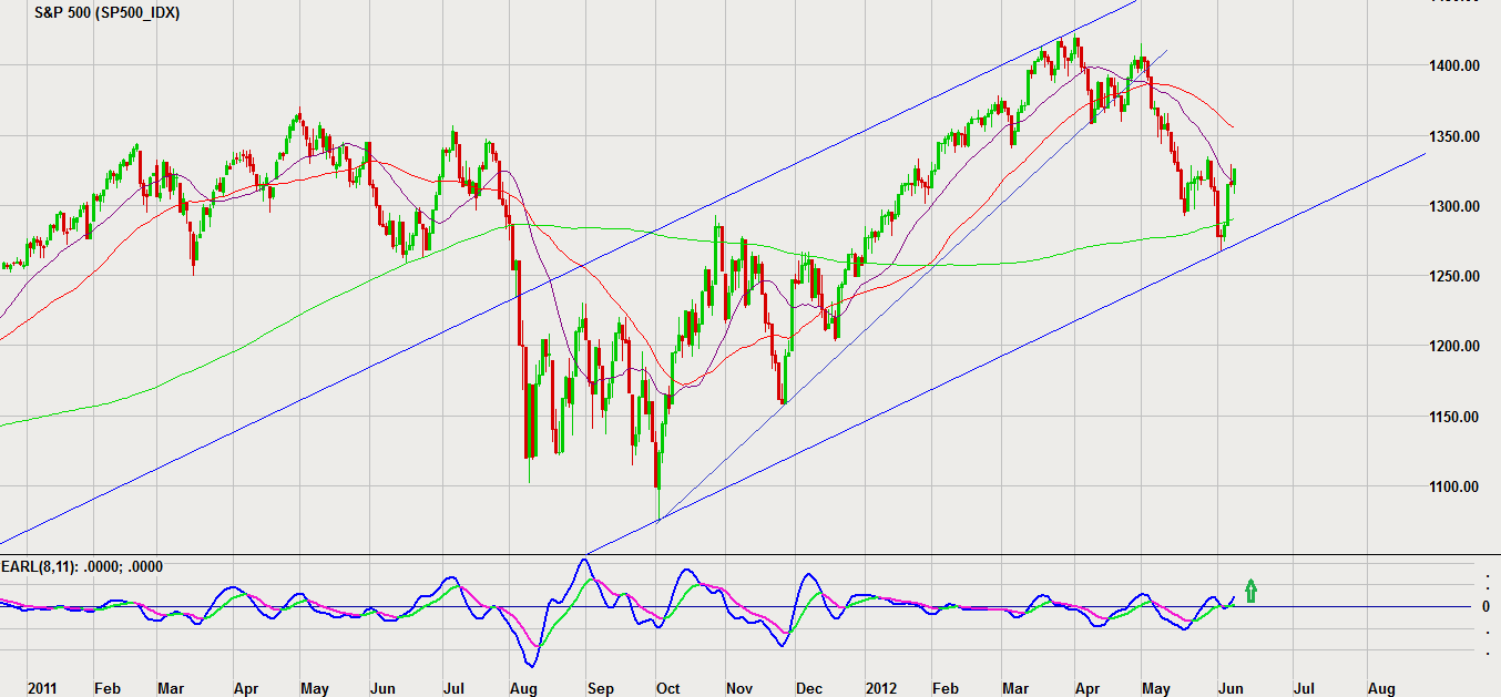 The S&P seems to have bottomed near 1270. We are in a lunar Green Period, so I would look for the market to climb further in the next weeks. There will be some resistance around 1350, then 1400.