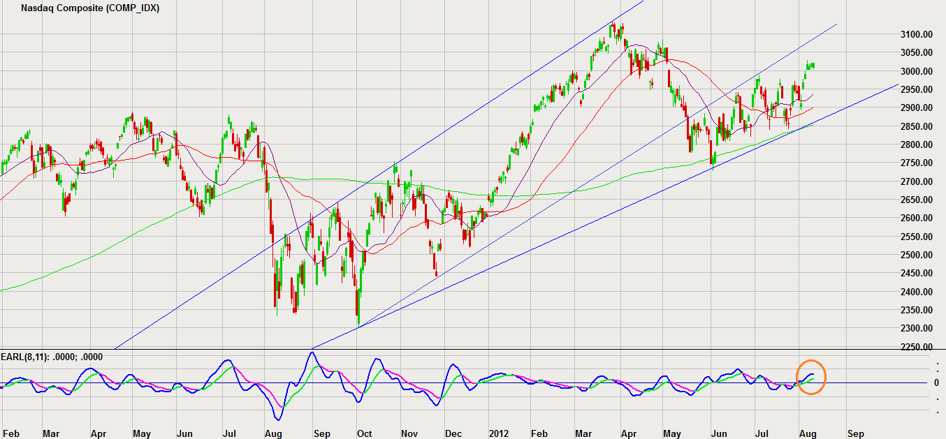 Notice how my longer term Earl2 indicator has correctly indicated earlier peaks in 2007, 2008 and 2011 (marked with green arrows).