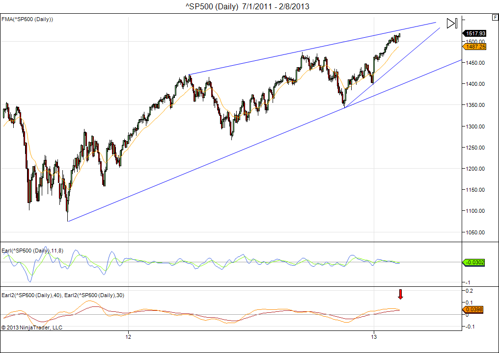 The Earl indicators are proprietary formulas I developed a few years ago. They are designed to be early, so you can typically see them peak or bottom (just) before the market does so.