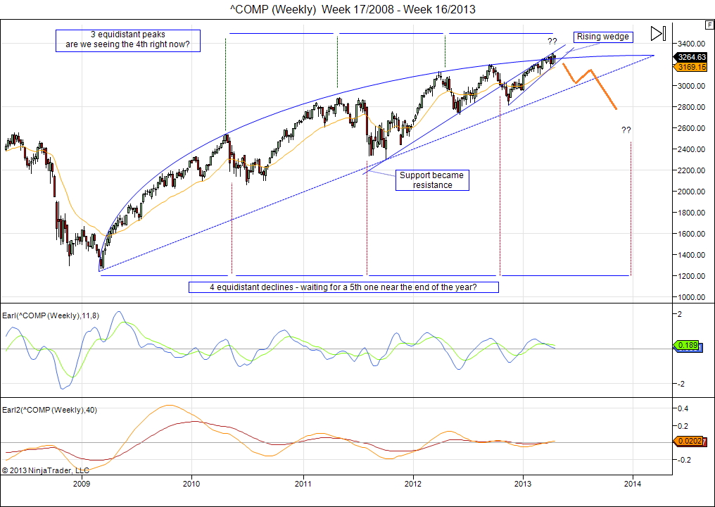 Notice how we have had four equidistant declines/bottoms within this arc formation, which may call for another bottom by the end of 2013.