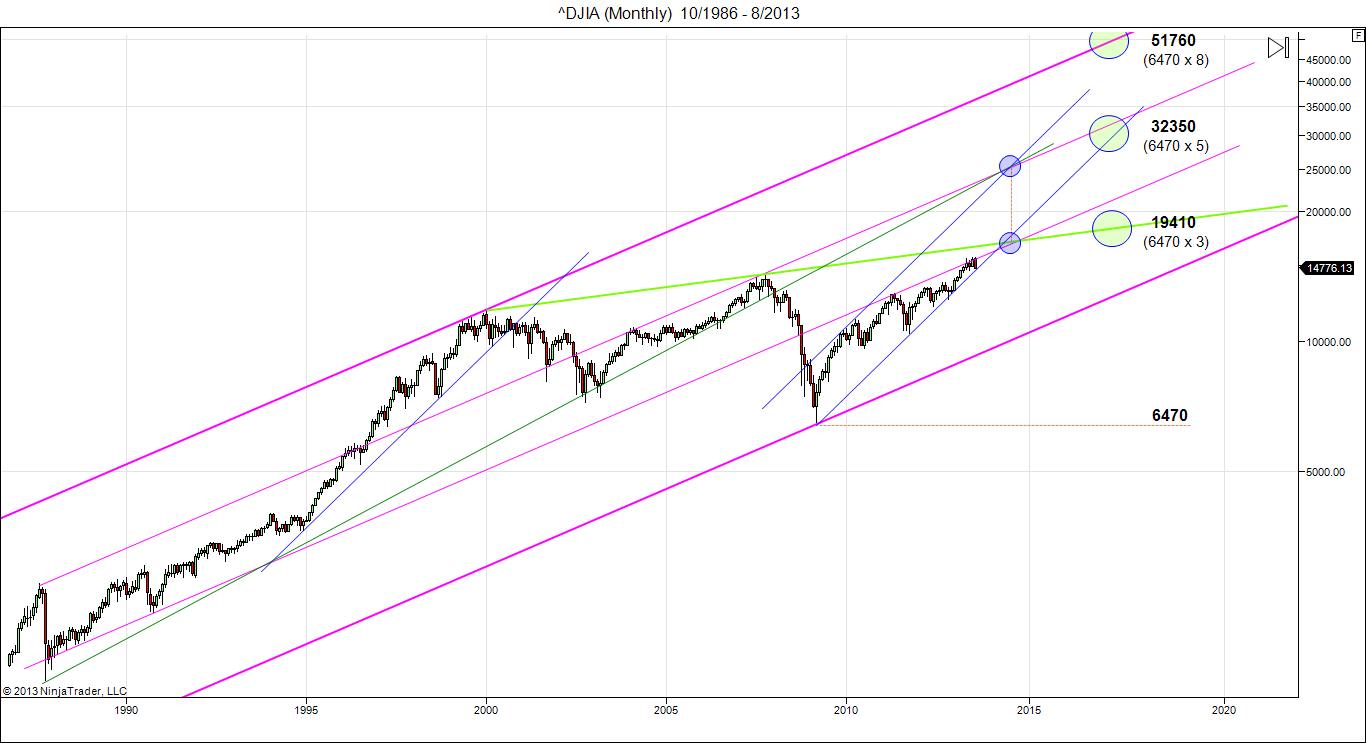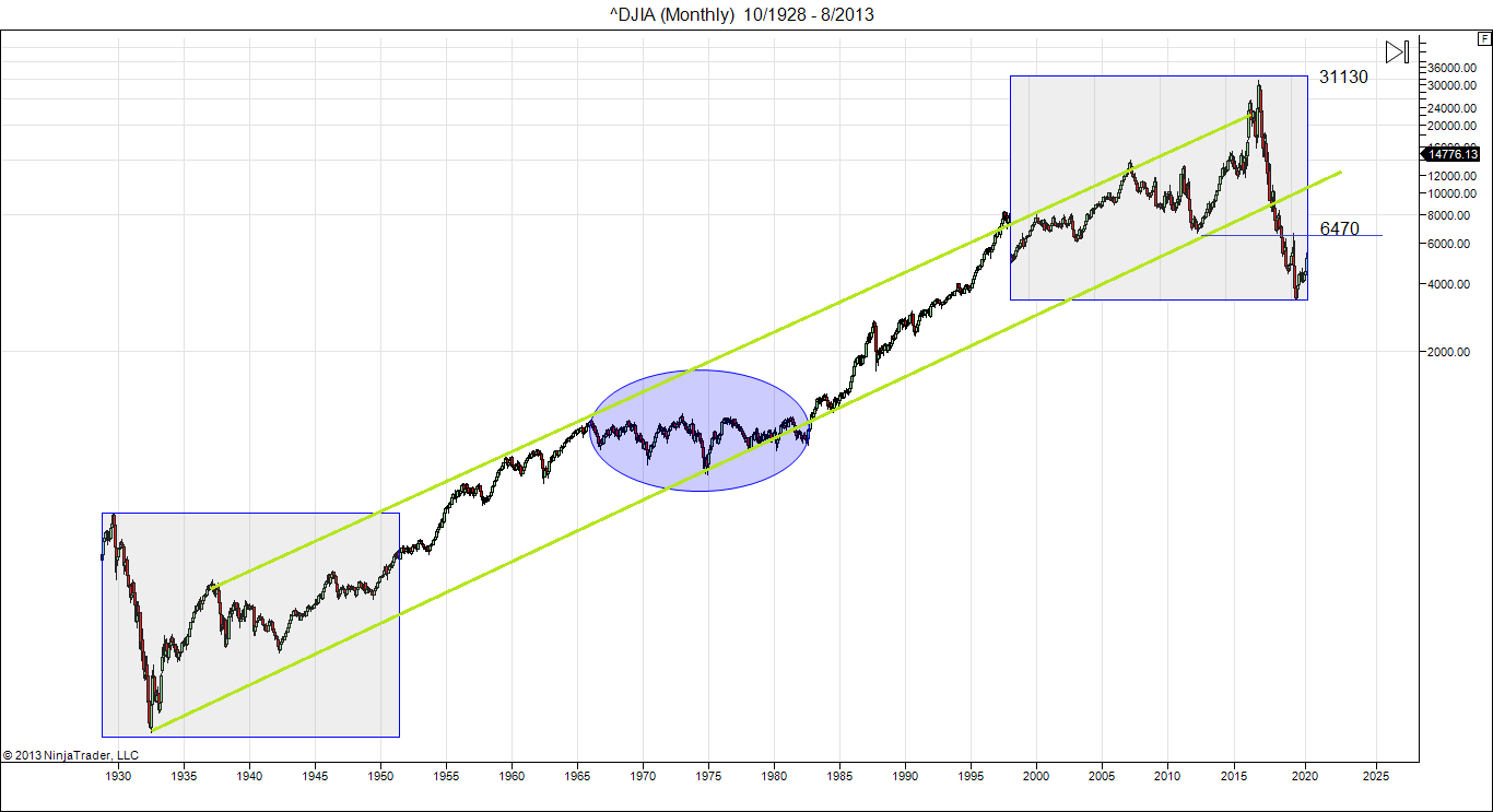 Here I have matched the 1949 mirror high to the 8000 level for the Dow, which puts the correction low at 6470, which was the actual low in 2009. That sets out an upside target of 31130 by the end of 2016.