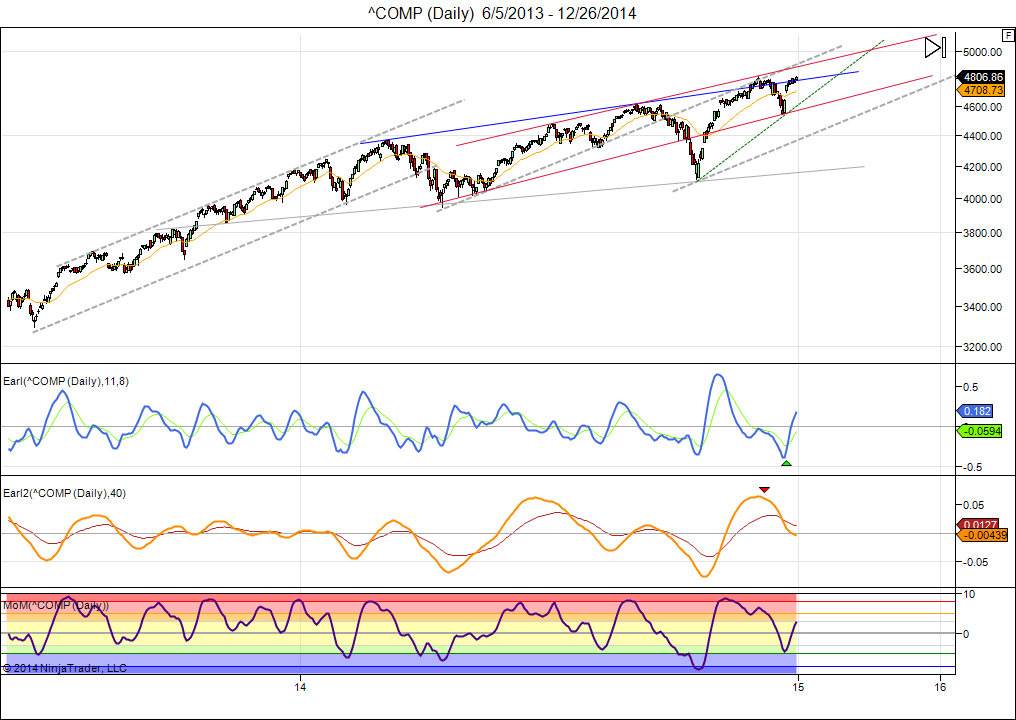 While it doesn’t look like we will get the down December that I was hinting at four weeks ago ( How about a down December? ), the indicated pattern has largely panned out. The Nasdaq did dip to 4600, but is recovering so fast that we are back to the highs already. What’s next?