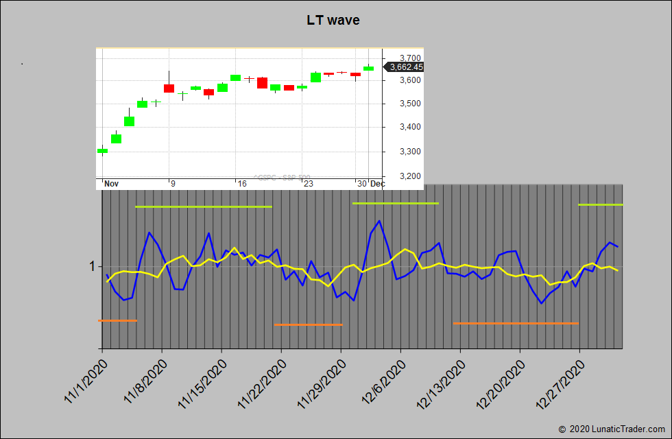 The LT wave was rather average in November. Expected mid-month strength started several days earlier than the wave indicated. The weakness in the final week was very mild, only producing a sideways.