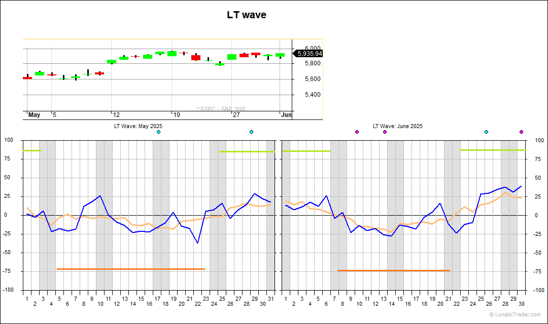 The month started relatively flat, which was in line with the LT wave. But the strong rally in the second full week was unexpected. In the third and fourth week the normal pattern seemed to come back again. Here is the LT wave for June: